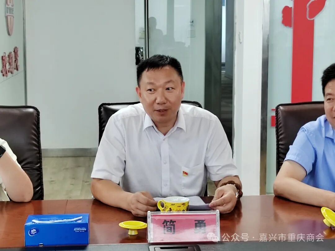 6月27日,重庆市渝北区工商联副主席彭红梅率队走访我会并展开座谈。嘉兴市工商联副主席鞠峰、宣传联络部部长俞程丽;商会执行会长简勇、常务副会长黄健、刘德庆,党支部书记、秘书长谭克杰等人参加。