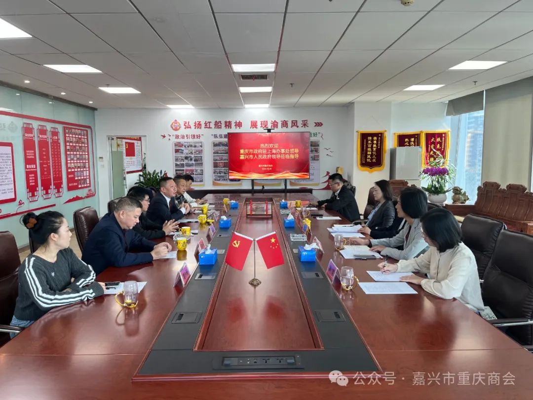 10月9日,重庆市政府驻上海办事处主任钟建波,浙江联络处处长李滨麓等领导走访我会并展开座谈。嘉兴市政府副市长李佳、市反走私和口岸海防管理服务中心主任朱欣毅;我会会长石成林,执行会长简勇、邹中福,监事长罗福彬,常务副会长黄小利,党支部书记、秘书长谭克杰等人参加。