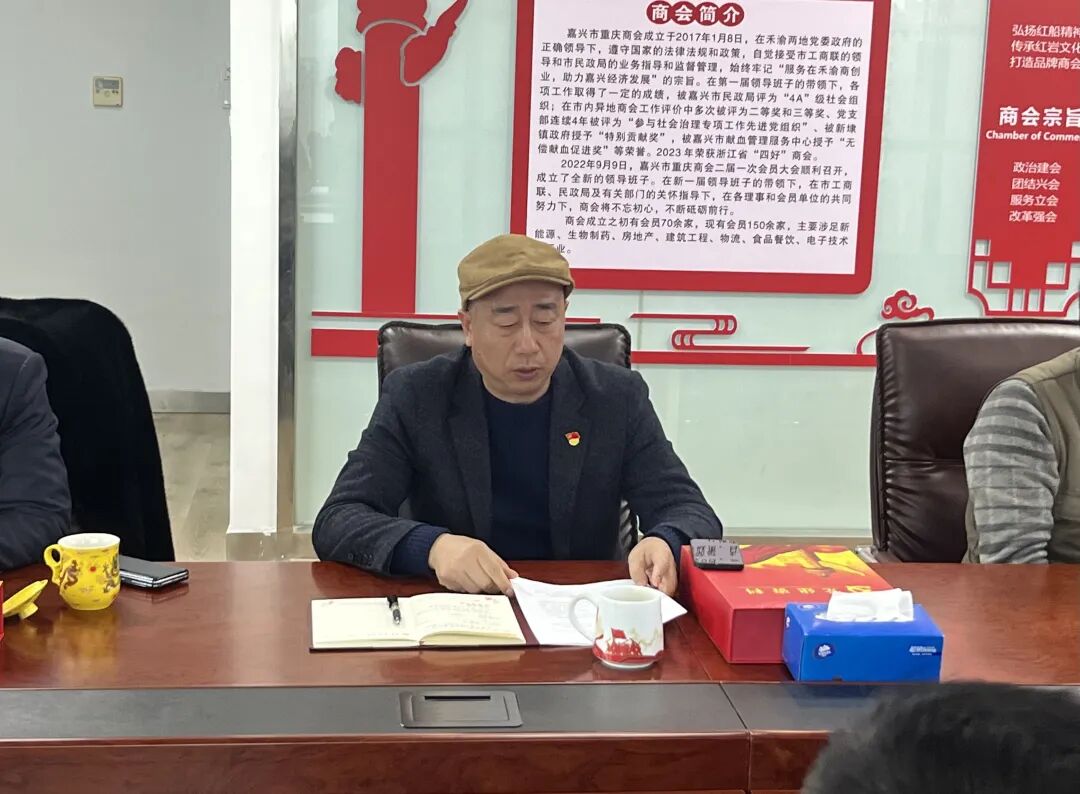 2月22日,嘉兴市重庆商会党支部举行主题党日活动,深入学习贯彻习近平总书记在民营企业家座谈会上重要讲话精神和嘉兴市两会精神,共同谋划商会2025年工作思路,促进商会改革发展,助推民营经济健康高质量发展。党支部书记谭克杰、组织委员赵官祥、宣传委员谭洪明及全体党员参加。