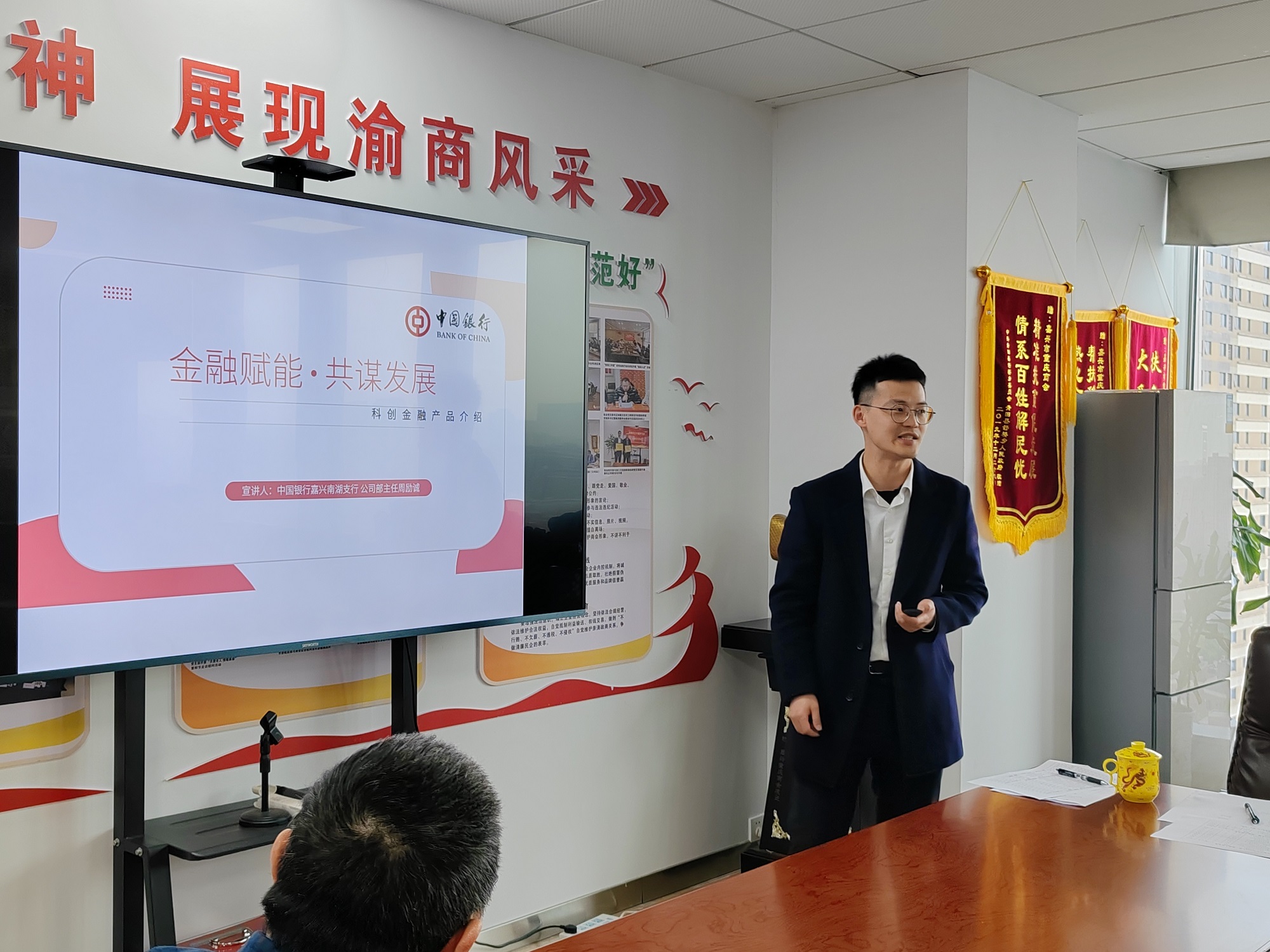 中国银行嘉兴南湖支行代表详细介绍了他们的优惠政策、金融产品及相关服务,并根据我会企业的未来战略规划和发展需求,制定了个性化金融服务方案,加大对商会会员的授信额度和支持力度,帮助解决企业融资难题,助力企业科技创新、数字化转型,为会员企业的发展注入了发展强心剂。