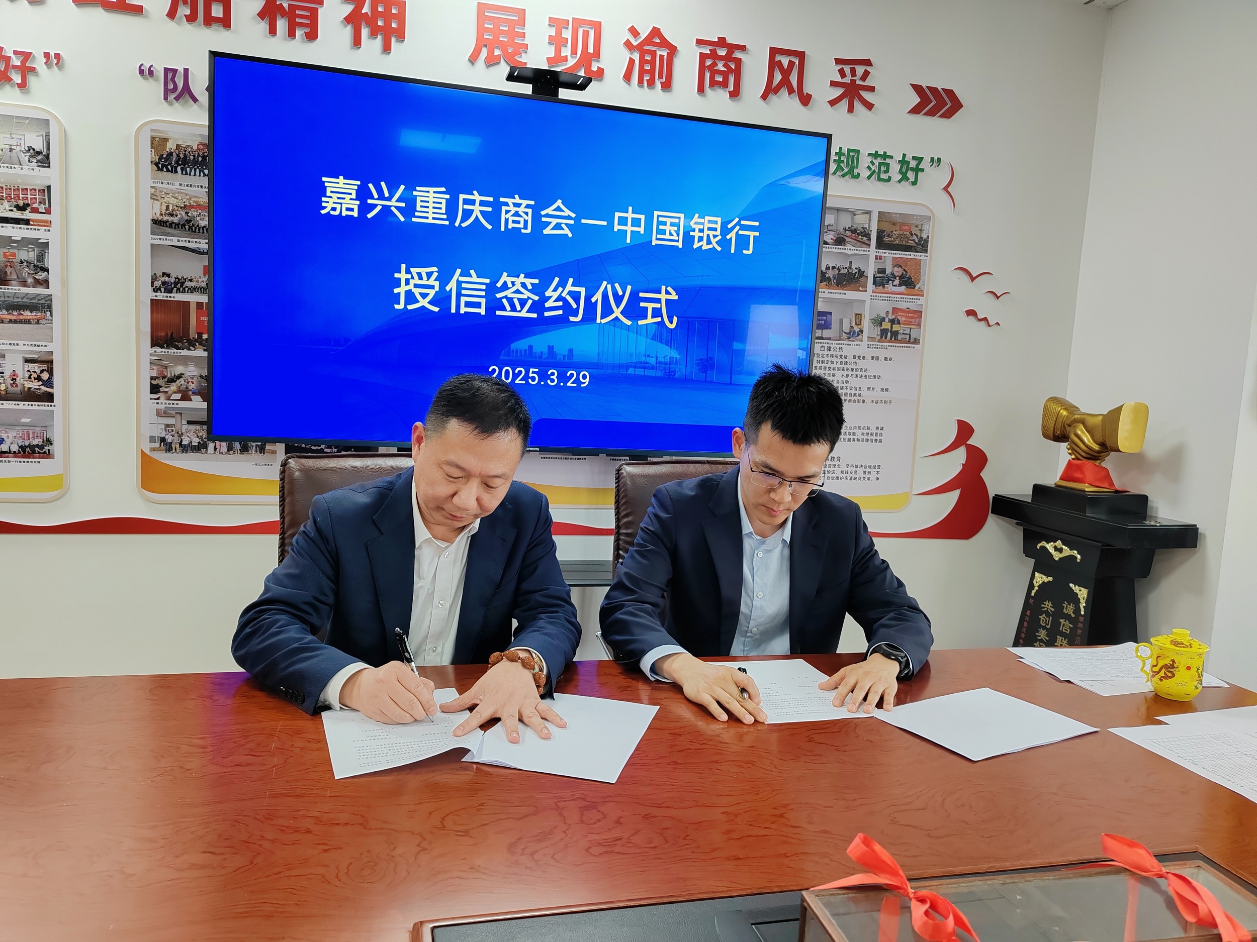 3月29日,嘉兴市重庆商会与中国银行嘉兴南湖支行举行战略合作签约仪式。执行会长简勇及副会长以上领导、中国银行嘉兴南湖支行代表等三十余人参加。