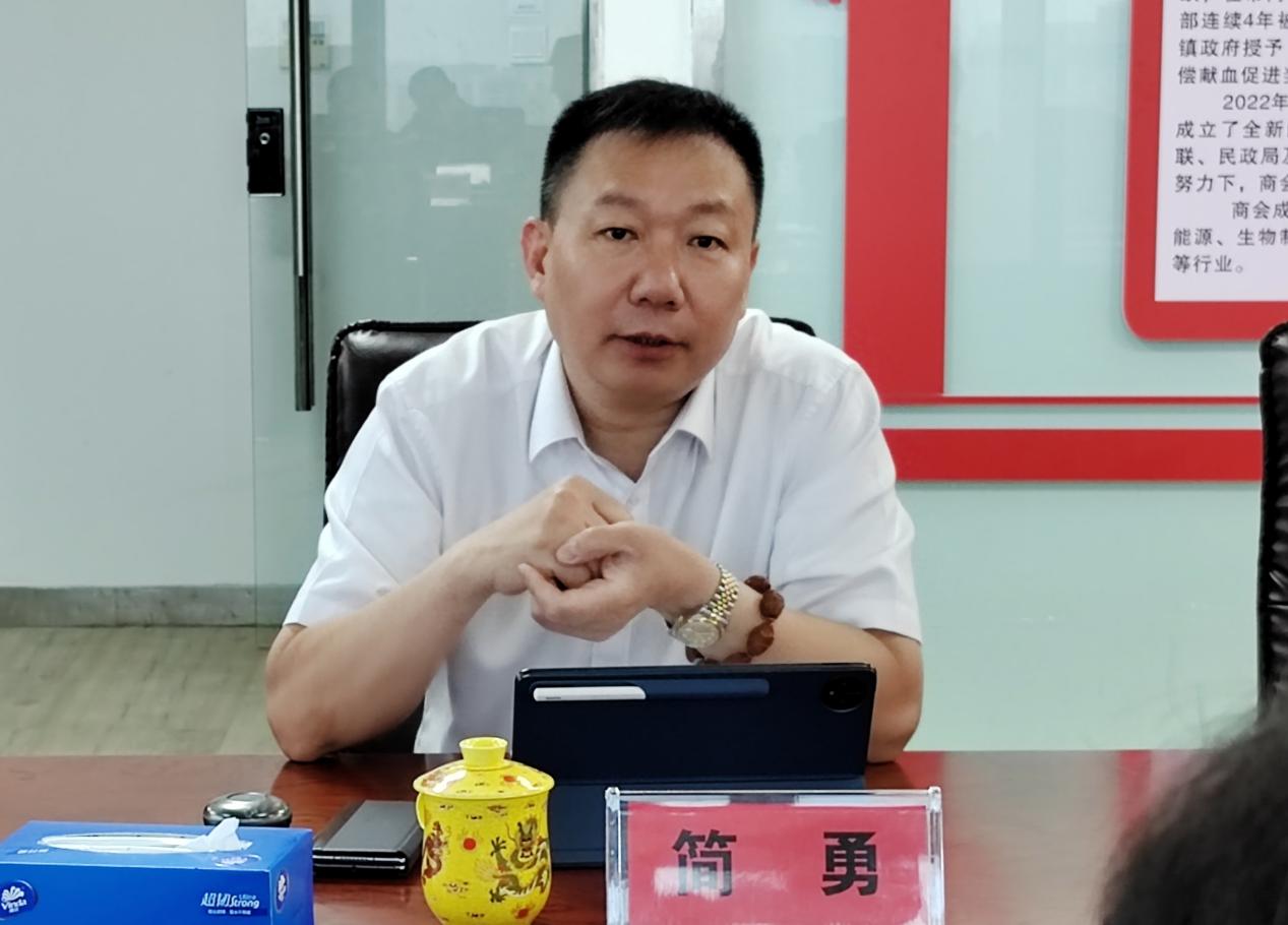 执行会长简勇汇报了商会的基本情况、特色性工作品牌以及下一步商会党建的重点工作。