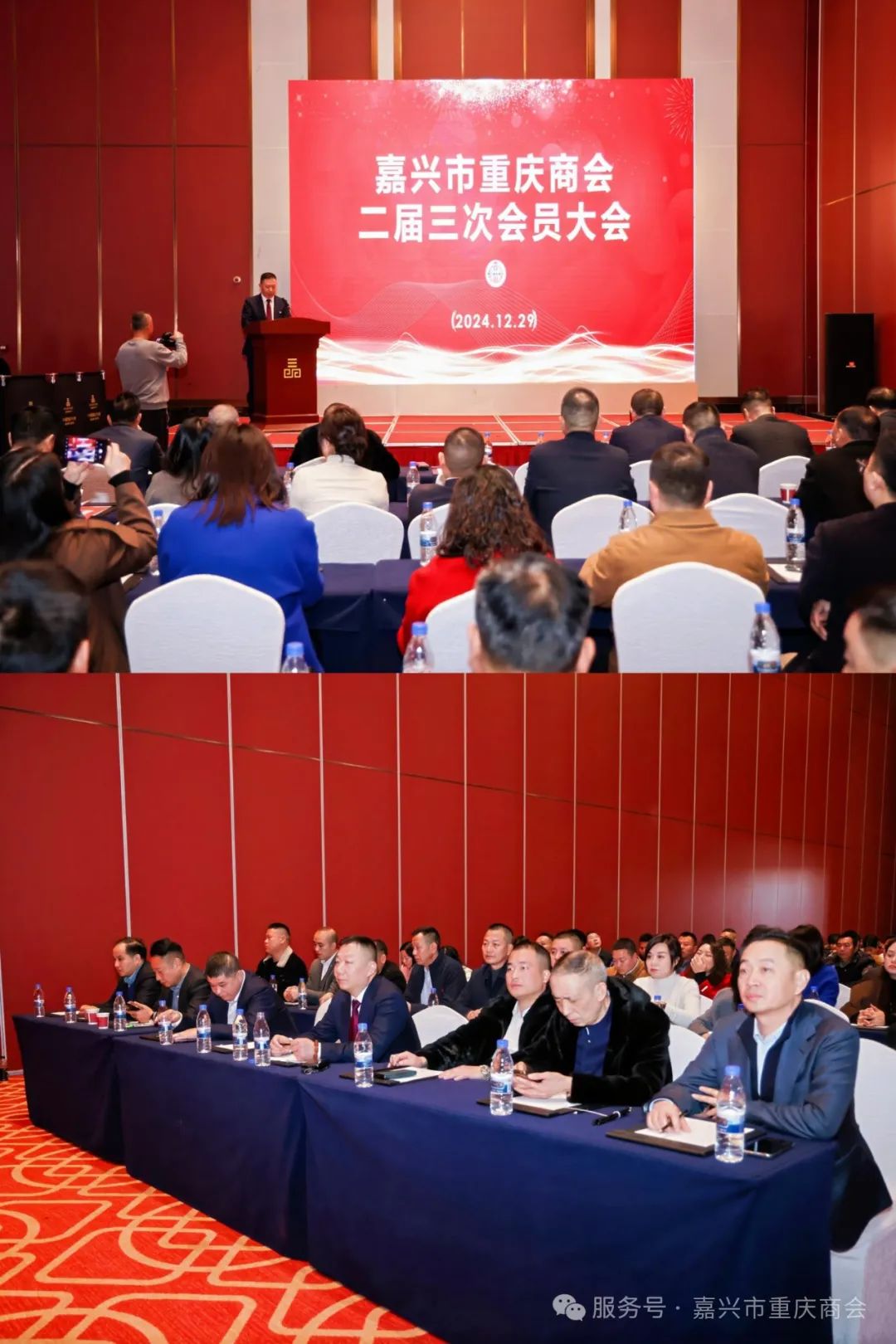 12月29日,嘉兴市重庆商会二届三次会员大会暨二届五次理事会在嘉兴晶晖酒店嘉宴中心红船厅圆满举行。商会会长石成林,执行会长简勇、邹中福,监事长罗福彬,以及各常务副会长、副会长、理事、会员共计150人参加会议。本次会议由商会执行会长简勇主持。